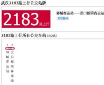 首末车时间:05:50-17:40终点站首末车时间:06:50-18:40票价信息:汽车公司:省客集团盛世通公司武汉2183路上行公交站牌