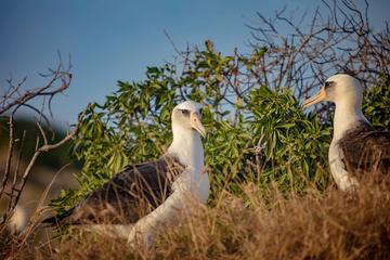 黑背信天翁(学名:Phoebastria immutabilis):是一种中等体型的信天翁,81厘米长,体重2210-2800克,是一种有极长翼羽的大鸟,翅狭长,翼展195-215厘米。雄性略大。鼻孔侧位,不愈合。特征为自颏至臀部为全白色,但翼上及背深色。翼下主要为白色,具深色边缘,覆羽具近黑色纵纹。 形态特征