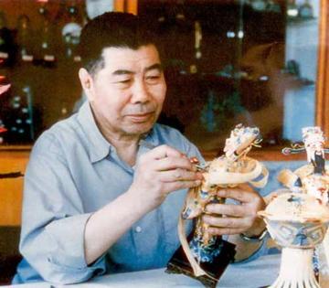 翟德寿 1915年出生,中国工艺美术大师。14岁拜花丝镶嵌老艺人于海先生为老师,学习花丝镶嵌技艺。1957年调往北京工艺美术研究所工作。