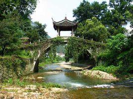 马尾闽安镇的一条旧河道上,有这样一座古老的石桥迥龙桥,又称回龙桥。那是一座望一眼就觉非同凡响的桥!迎着冬日午后的细雨,脚踩氤氲[yūn]着地之灵气的乡间小路,我来到了它的身边。撞得你眼球生疼的是用一块块青石堆砌的船形桥墩,不!那不是桥墩,那分明是四艘战舰!是让我们中华民族引以自豪的,扬武、振威、福胜号……是英烈们用躯体叠垒起的不朽桥墩!我驻足上前,蹲下身子,手掌轻轻地放到石栏柱顶雕刻得惟妙惟肖的奇兽珍果上,抚摩着……我虔诚地凝视着他们,时光在我眼中凝滞、倒流……我仿佛看见金色的船帆上染红了先烈们的热血,听到东海怒涛的咆哮和隆隆的震天炮声。 那又是一座工艺和造型尽善尽美的千年古石桥。《闽侯县志》载为“回龙桥”,《福州实用地图册》把万寿桥、回龙桥、龙江桥并称福州三大名石桥。它南北横跨邢港,全长66米,宽4.8米,4墩5孔,罕见的船形桥墩,花岗石平梁结构。两墩间距13米左右,平铺长15米,宽0.9米、厚1米的大石梁各5根,每根重约30吨。石板横铺桥面,石栏护其两侧,石栏板长3.3米、宽0.45米、厚0.15米,石栏柱0.45米见方、高1.4米,计36根。柱顶雕刻奇兽、珍果、栩栩如生,展示着我国唐宋石刻的精湛技艺,演绎着唐宋时期繁荣的文化景象。 回龙桥的绝妙处在它不是我们常见的独体桥梁,它附带有桥南的玄帝亭和桥北的圣王庙及观音阁三个古建筑。桥南引桥上的玄帝亭是桥亭的结构形式,穿过亭下始步上石桥。圣王庙呼应般建造在北引桥驳岸上,跨街廊亭与古石桥的驳岸共用一连体基础,当年的能工巧匠把他们浑然天成地融为一体,淋漓尽致地物尽其用,使跨街亭、圣王庙、观音阁一层又一层地让孤峰挺拔的棋盘山拱卫着。从桥南向北眺望,石桥、庙宇、山峦,形成整体,给人以稳定的视觉效果。然而,古桥建到此意犹未尽,他们还把位于圣王庙东侧,高距悬崖之巅,掩映于绿树苍岩中的尊王庙景观也糅[róu]合进来,为他们的“杰作”再添上一抹重彩,使桥南到桥北错落有致地连成了一组最具唐宋风格的古建筑群落。1991年3月此桥被定为省级文物保护单位。