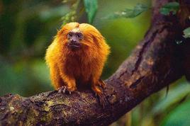 狮狨猴是指长得像狮子的狨[róng]猴,金毛狮绒可以算是狮狨属的代表,一身金色光滑柔软的长毛,不但有像狮子的鬃毛也有像狮子的尾巴,称它们为狮狨也是名符其实的·。金毛狮绒也是只分布于巴西,但是它们主要栖息在巴西东南部的热带雨林区当中,水果与昆虫食物充足,气候温暖潮湿,因此体型也比一般狨猴属的种类大上一号。巴西的野生动物保护工作对濒临灭绝的物种起到了很大帮助,狮狨猴从极危动物退到了濒危动物。 形态特征
