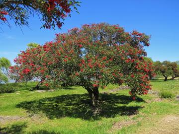 鸡冠刺桐为落叶灌木或小乔木,高2~4米[6],茎和叶柄稍具皮刺;奇数羽状复叶,具3小叶,呈长卵形或披针状长椭圆形;总状花序顶生,花萼钟状, 花橙红色[2][7],旗瓣倒卵形特化成匙状,宽而直立,翼瓣发育不完全[6];荚果褐色,种子间缢缩,种子大,亮褐色,花期4~7月。[1][2][7]鸡冠刺桐喜光照,稍耐阴;喜温暖湿润气候,耐寒、耐干旱;喜疏松肥沃的土壤,耐盐碱。[7]鸡冠刺桐以播种繁殖为主,栽培包括播种、移植、施肥、整形等步骤。[8] 2018年6月12日,鸡冠刺桐被列入《世界自然保护联盟(IUCN)濒危物种红色名录》,保护级别为无危(LC)。[3]鸡冠刺桐适应性强,树态优美,树干苍劲古朴,花形似鸡冠,具有较高的观赏价值[6][7],适宜作庭园树和造景树[2],可用于道路绿化,也可孤植或列植于公园、绿地等[7][6]。此外,鸡冠刺桐开花期长,流蜜期还可实现城市定地养蜂。[9]