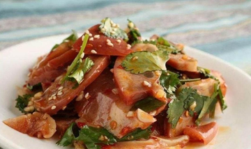 后加入调料拌匀,最后加入葱花和香菜即可。这道菜肉质鲜嫩,口感清爽,是夏季消暑的好选择。