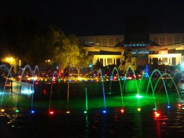 游憩广场位于石河子市中心,石河子军垦第一楼正南方,是一个杂花生树,滴翠泼彩的秀丽广场。广场北入口处,有三个荷兰菊篱环绕的草坪,每个草坪中,有九棵碧绿苍翠的红皮云杉,组成一朵绿色的梅花。草坪旁高擎蓝天的银色高杆灯,给广场之夜平添几分辉煌。风景名胜步入游憩广场,首先映入眼帘的就是喷银吐玉,欢腾雀跃的喷泉。 喷泉位于东西南北轴线的交点上,是广场最诱人的景观。喷泉泉面呈六瓣花型,泉中有106个喷头,最中间的一组分三个层次,最高层次喷水近20米,水柱雄豪,颇为壮观;周围作为衬景的小喷泉,所喷水柱形态各异,和主体喷泉的雄豪相映衬,别有一番情趣。游憩广场南侧,高高地矗立着“王震将军铜像”,依稀可见当年王震将军走马踏勘、憧憬新城的风采。广场东西两侧有两组群雕,东侧是“边塞新乐章群雕”,西侧是“军垦第一犁群雕”,和“王震将军铜像”呈品字型呼应,共同构成军垦新城的独特城雕。围绕着这些雕像,错落交织着大大小小30多个树坛和花坛,浓溶相宜、彩色纷呈,使人留连忘返。[1]主要景点广场雕塑广场东南西北四面都有一组雕塑。北端,是 2009年9月27日正式落成的“屯垦戍边纪念碑”,高大宏伟,雄踞众雕塑和景点之中。屯垦戍边纪念碑屯垦戍边纪念碑的主体,是一把剑身笔直、直插云霄的宝剑。宝剑的剑身和剑柄处有环绕的人物雕 塑,分别是工、农、兵、知识分子,他们当中有汉族也有少数民族,代表着新疆各民族兄弟姐妹紧紧团结在一起。剑柄则是用石料砌成,上面以形状优美古朴的花纹浮雕作为装饰。整个主体高 35.9米,代表着1950年王震将军率领的来疆屯垦戍边的一支部队的番号——三五九旅。纪念碑东侧是一块象征新疆版图的花岗岩,正面写有“屯垦戍边,千秋伟业”八个金色大字,背后是一篇以屯垦戍边为主题的赋文。岩石下面是9名军垦战士的群体雕塑,代表着屯垦戍边的兵团三代人,他们有的奋力拉犁,有的手握钢枪,也有的杠着粮食、牵着羊羔和马匹,再现了屯垦戍边艰苦奋斗的劳动场景。军垦第一犁广场西侧的雕塑,是《军垦第一犁》。雕像总体高4.1米,其中主体长7米,高2.7米,坐落在长9米、宽2米的灰色大理石基座上。雕塑主体为犁地景象,两人在前 奋力拉犁,一人在后执掌铧[huá]犁。三个人祼[guàn]露着身体,在强健的体魄和坚毅的目光中,有着化宏图为伟业、化汗水为硕果的意志和意念。那简朴的军装,那原始的劳动工具和滞重的步态,勾画出当年创业难以想象的苦难。《军垦第一犁》被视为石河子的标记,恰是这一犁,让这个城市迈出了第一步,开辟者们用身躯拉动的犁,是这座城市永久的记忆:军垦战士的犁铧,给绿洲播种理想和希望。戈壁母亲广场东侧的这座雕塑,叫《戈壁母亲》,又名《边塞新乐章》,这是为新疆兵团女性建造的一座丰碑。雕像总体高4.1米,其中主体长7米,宽1.7米,高2.8米,雕塑主体为铜铸的三位女性和一个男婴。处于中间位置、怀抱婴儿的母亲是50年代初期从军新疆兵团的山东、湖南妇女的代表。大嫂侧前 方倚着一位留短发的年轻姑娘,是60年代投身兵团建设的上海、北京、天津、武汉等地的知识青年的代表,她悠然娴静,憧憬着美好的未来。雕像上的