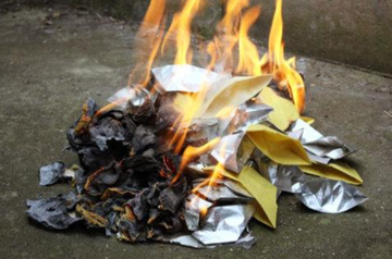 祭祀或礼佛时锡箔燃烧后的灰烬