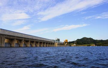 大黑汀水库,位于中国河北省唐山市迁西县城北5千米的滦河干流上,是一座年调节水库,总库容为3.37亿立方米。该水库控制的流域面积为35100平方千米,其中潘家口与大黑汀水库之间流域面积为1400平方千米,占滦河总流域面积的79%。大黑汀水库上游约30千米有潘家口水库,两水库联合运用,发挥防洪、供水作用。大黑汀水库以供水为主,同时也具备发电、防洪、灌溉等功能。主要建筑物有宽缝式砼拦河坝一座,坝后式水电站两座。右岸坝后设110千伏高压开关站一座。主坝坝顶高程138.80m(黄海高程),保坝洪水位138.50m,正常蓄水位133.00m(与设计洪水位相同),死水位121.50m。该工程坝型采用宽缝封闭式阻水帷幕坝内抽排措施的优化断面。[1] 水库建筑