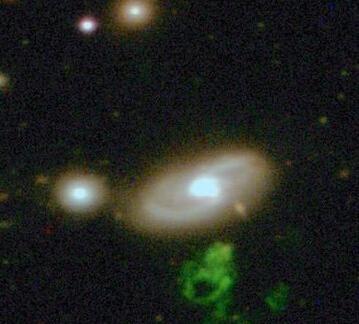 哈尼天体,Hanny's Voorwerp,它的发现者是荷兰哈尼·冯·阿科尔女教师,她于2007年在参加星系动物园项目时第一个发现了这个天体,一团巨大的发出绿光的气体,长达30万光年,位于一个旋涡星系附近,飘荡于太空之中,这个古怪的东西被称为“哈尼天体”,目前已经在其内部确认一个恒星新生区。 概述