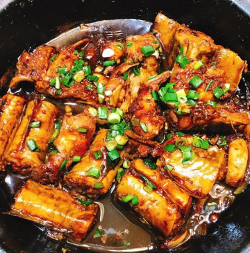 是一道菜品,主要材料为鳗鱼干,辅料包括油、糖、