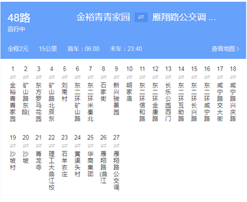 第二公司一车队。线路连接了矿山路、东二环、雁翔路沿线,是该区域的重要公交线路。48路前身为连接