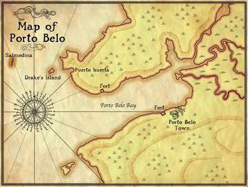 1513年9月25日,瓦斯科·努涅斯·德·巴尔沃亚向西南越过达连地峡后,在高山顶上望见了一片汪洋,地理大发现史从此翻开了新的一页。后来新任都督佩德拉里亚斯·达维拉(Pedrarias Davila)对他很是顾忌,竟于1519年将其处死。然后佩德拉里亚斯追随对手的计划,把殖民点迁到了地峡的南边,建立了巴拿马城。他的一位部下迭戈·德阿尔比特斯(Diego de Albites)受命到北方海岸探险,于1519年重建了被遗弃的诺姆布雷·德迪奥斯。佩德拉里亚斯下令疏通连接南北两地的山道,据说他们抓获了4000名印第安人来建造这条通路,一路开山架桥,铺设河石。虽说长仅60余英里,宽不过3英尺,却不知沾染了多少印第安人的血汗。1519年8月,佩德拉里亚斯从诺姆布雷·德迪奥斯出发,检阅这条山路,一直到达了巴拿马城。 不久,庞大的印加帝国被皮萨罗等人征服,地峡变得格外重要起来。从秘鲁掠夺来的大量金银财物在巴拿马城卸货,沿着地峡的山路运往诺姆布雷·德迪奥斯,又在那里等待装船运往西班牙国内。很快诺姆布雷·德迪奥斯就被指定为殖民地内特许通商的几个港口之一,变得非常繁荣起来。同样,很快也引来了一些不速之客。1572年7月29日和1573年4月1日,著名的英国海盗弗朗西斯·德雷克两次劫掠了迪奥斯港,成功地击败了防御者,抢走了价值数十万金币的财宝。显然,由于地理条件的限制,迪奥斯港并不是一个便于防守的地方。当西班牙人意识到这一点后,贝略港就要登上历史的舞台了。 1586年,西班牙国王腓力二世派人到加勒比海对各个港口进行考察。考察者注意到了贝略港所具有的优越港口条件和可供防御的地形,极力向国王推荐这个地方,于是菲利普二世下令在此建立起运港。1597年3月20日,在新西班牙(墨西哥)官员弗朗西斯科·德瓦尔维德-梅尔卡多(Francisco de Valverde y Mercado)的主持下,城镇正式建立起来,命名为圣菲利普·德波多韦罗(San Felipe de Puertovelo)。迪奥斯港的居民全都搬了过来——就在两年前,它被德雷克一把火烧掉了。而它于1537年被授予的城市地位和盾形徽章也一并移交过来,徽章是由城堡和船体组成的,边上题以铭文“Tierra Firme, Breñas de oro”。