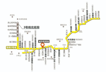 杭州地铁3号线(Hangzhou Metro Line 3)[1],是中国浙江省杭州市境内一条地铁线路,为杭州城市轨道系统的骨干线,标志色为正黄色,运营机构为杭州市地铁集团有限责任公司。[8][9][11][6][7] 杭州地铁3号线列车为AH车型,集合了A型、B型车的特点,采用国际先进标准设计制造,4动2拖6辆编组,铝合金全焊接车体。充分利用CJJ96标准规定的车辆限界和现有土建条件来提高列车载客量,最大载客量达到了2260人,比B型车增加210人/列,相比B型车增加了11%的载客量。[8][9]杭州地铁3号线一期首通段全长约21千米,共设车站13座,分别为星桥站、黄鹤山站、华鹤街站、丁桥站、桃花湖公园站、同协路站、华丰路站、汽轮广场站、新天地街站、善贤站、大关站、香积寺站和潮王路站。[12] 杭州地铁3号线主线西起余杭区吴山前村站,途经余杭区、西湖区、拱墅区、上城区、临平区,东北止于临平区星桥站;小和山支线位于西湖区境内,东北起自西溪湿地南站,西南止于石马站。杭州地铁3号线全长57.5千米,采用全地下敷设方式;共设地下车站39座(其中2座暂缓开通)。[2][3][4][5][a] 2016年12月12日,中华人民共和国国家发展和改革委员会批复《杭州市城市轨道交通第三期建设规划(2017-2022年)》,杭州地铁3号线一期工程(主线自文一西路至星桥路站,支线自小和山至百家园站)在列。[13][14]2017年3月,杭州地铁3号线一期工程可行性研究报告获得浙江省发改委批准。[15]2018年4月,杭州地铁3号线一期工程正式开工建设;[11]同年5月13日,地铁3号线首个主体施工车站星桥路站完成首幅地下连续墙成槽,标志3号线主体工程正式开工。[16][17]2019年10月26日,杭州地铁3号线首座车站(长乐路站)实现主体结构封顶。[18]2021年4月,杭州地铁3号线首通段实现“洞通”;[11]5月,首列电客车到段;[11]7月,杭州地铁3号线主体工程完工。[19]2022年2月,3号线首通段开通。[11]同年6月10日,杭州地铁3号线后通段开通运营。[20]同年6月16日,杭州市人民政府批复了杭州地铁3号线一期工程车站站名。[21]2023年2月21日,杭州地铁3号线二期项目开工;[22]2024年9月4日,杭州地铁3号项目星光街站首幅地连墙开工;[23]10月,杭州地铁3号线二期工程土建施工SG3-2-1标段星桥站-世纪大道站区间风井主体结构顺利封顶 ;[24]2025年6月,杭州地铁3号线项目星光街站3区基坑顺利通过开挖安全条件验收。[25] 杭州地铁3号线连接未来科技城、小和山高教园区、城西居住区、主城中心武林广场和西湖文化广场商业中心、城 北新城居住区、东部临平副城等,覆盖了杭州西部——主城中心——东北部发展主轴,加强了城市西部未来科技城和东部临平副城与主城区的联系,是杭州市轨道交通线网中城市西向东北方向的轨道交通骨干线。[26] 建设历史