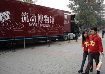 当今的博物馆功能已经超越了传统的范畴,博物馆的形式与空间也突破了以往有的建筑物和固定的空间模式。四川博物院“大篷车”流动博物馆于2009年11月筹建,2010年2月10日正式成立。“大篷车”流动博物馆作为四川博物院一个常设机构,属于全国首创,是四川博物院经过实地调研,在充分了解我国现有博物馆发展状况基础上的一项重要举措。 “大篷车”流动博物馆以车辆为载体,把文物展览办到边远山区、民族地区、革命老区,办到普通公众的家门口,让更多的群众享受博物馆的文化服务,把厚重的历史文化知识和爱国主义教育以通俗易懂的方式和朴实的言语传达给参观者。“大篷车”流动博物馆集文物展示、多媒体互动、传统展板等丰富的展示内容和互动内容为一体,活动内容为展览地观众量身打造,旨在让观众有所见、有所闻、有所学。 基本介绍