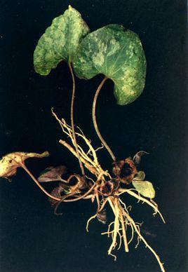 叶身横径较纵径长,叶基凹入,顶端平,状如肾状的叶称为肾形叶。图中细辛可作为具有肾形叶的代表。细辛为常用中药,全草入药,有祛风、散寒、止痛、平喘的疗效,用于治关节疼痛、鼻塞、牙痛等症。由于其叶形的奇特也可盆植,用于观赏。 形态特征