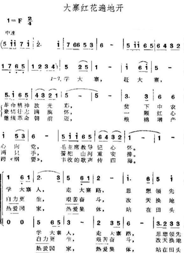 上世纪六、七十年代,曾经有一首广为流传的民族器乐曲《大寨红花遍地开》。这个曲子编曲、配器都不错,很受