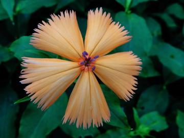 多年生草本,高50-90厘米,全株近无毛。根簇生,细圆柱形,黄白色,稍肉质。茎单生,稀疏丛生,直立。叶片椭圆状倒披针形或卵状倒披针形,长(5-)8-15厘米,宽(1-)2-5厘米,基部楔形,顶端渐尖,两面近无毛,边缘具缘毛。 二歧聚伞花序通常具数花;花直径4-5厘米,花梗极短,被稀疏短柔毛;苞片披针形,草质,具缘毛;花萼筒状,长(25-)30-35毫米,直径3.5-5毫米,纵脉明显,无毛,萼齿披针形,长8-10毫米,顶端渐尖,边缘具缘毛;雌雄蕊柄长10-15毫米;花瓣橙红色,爪不露出花萼,狭楔形,无缘毛,瓣片轮廓倒卵形,长(15-)20-25毫米,顶端具不整齐缺刻状齿;副花冠片椭圆状;雄蕊不外露,花丝无毛。蒴果长椭圆形,长约20毫米;种子未见。花期6-7月,果期8-9月。