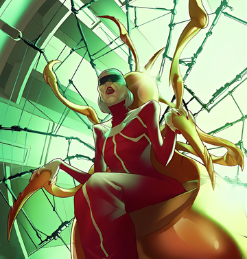 蜘蛛夫人,原名Cassandra Webb,是一位天生的异能人,拥有预知能力和精神感应能力。她的外观是一位老奶奶,因为患有严重的肌无力,所以必须依靠她已去世丈夫制造的生命维持装置续命。她是一位失明的人士,同时也是一位瘫痪的人。蜘蛛夫人与蜘蛛侠的相识源于她的“天眼”能力,她能轻松感应到被绑架者的内心,甚至连受害者的名字和所处位置都感应了出来,蜘蛛侠根据这些信息也很快救出了受害者。后来,反派雇佣了红坦克去绑架蜘蛛夫人,蜘蛛夫人也感应到了威胁,所以找到了蜘蛛侠帮忙。 在蜘蛛夫人知道了蜘蛛侠的秘密身份后,利用蜘蛛侠帮她寻找一件有魔法的法宝治她的病,结果医好了她的病而且变回年轻。中间也有向蜘蛛侠提供线索。她还是第三代蜘蛛女侠的祖母。 不久后,蜘蛛夫人和第三代蜘蛛女侠玛蒂·富兰克林(Martha Franklin)被猎人克莱文的家人抓住过,但玛蒂·富兰克林(Martha Franklin)被用做复活猎人克莱文的儿子的实验品而杀死,蜘蛛夫人也被猎人克莱文的妻子杀死了,临死前她将自己的超能力传给了第二代蜘蛛女侠茱莉亚·卡彭特。