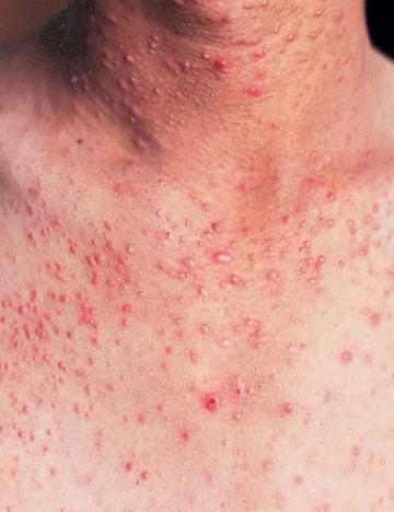 本病的病原菌多为糠秕[bǐ]或球形马拉色菌,马拉色菌是人体正常寄生菌,在促发因素影响下(如长期使用糖皮质激素或广谱抗生素等),马拉色菌就可在毛囊内大量繁殖,其脂肪分解酶将毛囊内的甘油三酯分解成游离脂肪酸,游离脂肪酸可刺激毛囊口产生较多脱屑并造成阻塞,使皮脂淤积于毛囊内,加之游离脂肪酸的刺激致毛囊扩张破裂,导致毛囊内容物释放入周围组织,产生炎症反应。