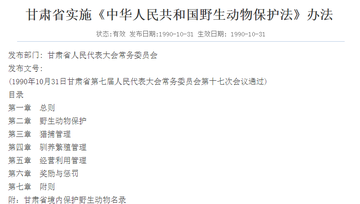 《甘肃省实施<中华人民共和国野生动物保护法>办法》已由甘肃省第十三届人民代表大会常务委员会第七次会议于2018年11月29日修订通过,现将修订后的《甘肃省实施<中华人民共和国野生动物保护法>办法》公布,自2019年1月1日起施行。