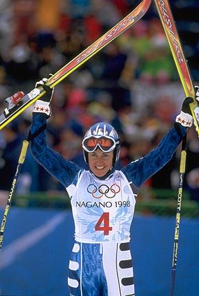 1990年,肠道阻碍更差点结束她的生命。孔帕尼奥尼的奥运辉煌历史开始与1992年的法国阿尔贝维尔冬季奥运会,她在超级大回转中夺取了一枚金牌,第二天,她参加大回转比赛时候,从空中摔下来,直接送进了医院,并在病床上结束了她的第一次奥运之旅。 1994年挪威利勒哈默尔冬季奥运会上,她弥补了遗憾,获得了大回转比 赛的金牌。1998 年日本长野冬季奥运会上,她又一次夺取了超级大回转的金牌,成为第一位在三届奥运会中连续拿到金牌的滑雪运动员。