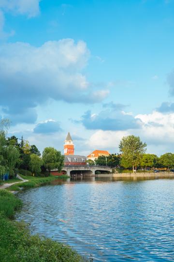 走进美兰湖罗店北欧新镇,一股浓厚的异域风情让人顿时辨不清到底身在何处。波光粼粼的湖面在柔美阳光的映衬下,矗立着的钟阁搭配起了各式红墙黑瓦的洋房。