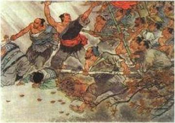 陈胜称王总共六个月的时间。当了王之后,以陈县为国都。从前一位曾经与他一起雇佣给人家耕田的农民听说他做了王,来到了陈县,敲着宫门说:“我想要见陈胜。”守宫门的长官要把他捆绑起来。经他反复解说,才放开他,但仍然不肯为他通报。等陈王出门时,他拦路呼喊陈胜的名字,陈 王听到了,才召见了他,与他同乘一辆车子回宫。走进宫殿,看见殿堂房屋、帷幕帐帘之后,客人说:“多啊!陈涉大王的宫殿深广气派啊!”楚地人把“多”叫做“伙”,所以天下流传“伙涉为王”的俗语,就是从陈胜开始的。这客人在宫中出出进进越来越随便,常常跟人讲陈胜从前的一些事。有人就对陈王说:“您的客人愚昧无知,专门胡说八道,有损于您的威严。”陈王就把来客杀死了。从此之后,陈王的故旧知交都纷纷自动离去,没有再亲近陈王的人了。 注释