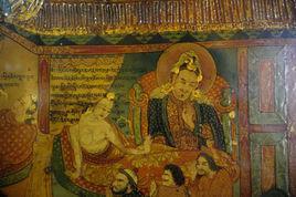 很久以前,在曼扎岗地方,有一个国王名叫格勒旺布。他的妃子哈江堆姆是个很厉害的魔女,心地狠毒,胜过豺狼。一天,国王格勒旺布把曼扎岗所有的大臣和老百姓都集合到王宫外面的广场上,宣布说:“后天,太阳照着王宫的时候,我们一起到东方山顶上去打猎,大家好好去准备。”第三天早上,当太阳照着王宫的时候,大臣们和百姓都带上火枪和弓箭,国王牵着猎犬甲查巴西,率领大家上山打猎去了。他们把东方所有的山头都走遍了,没打到一只野兽,后来在靠近边界的地方,登上一座大山,打到三十七只麋鹿。可是那天晚上,那只宝贝猎狗甲查巴西却突然消失得无影无踪,谁也说不出它跑到哪儿去了。国王急得要命,对大臣和百姓说:“今天随太阳转悠了一天,把我的甲查巴西给丢了,要知道它是我的不可缺少的宝物。在没有把它找到以前,我宁愿死也不肯回去,今晚就在这儿露宿。明天太阳一出来,大家都去找!”第二天,天刚一亮,国王就把大臣直南增叫醒了。直南增起来后,向四面八方仔细察看、倾听,不用说狗的脚印没找着,连狗叫声都没听见。他很是愁闷,就爬上一座大山,再向四周察看,只见东方有一座密密的黑森林,森林中间有一块平坝子,平坝子中间有一幢小房于。小房子式样很精巧,并且还在冒着炊烟。直南增一见,心里寻思:“狗大概跑到那儿去了吧。”于是,连忙跑到国王跟前禀报。国王听了,高兴地率领众大臣、老百姓,一直来到那森林中平坝上的小房子门前,果然发现了狗的脚印。大臣直南增走上前去敲门。过了一会儿,从房顶上漏水的洞口里现出一个老婆罗门。国王格勒旺布从自己的噶乌(一种金银制成的护身盒)里取出一条吉祥哈达,挂在一根杆子梢头,对婆罗门说:“在你的门口发现了狗的脚印儿,请你把猎狗赶快还给我吧。”老婆罗门一听,大吃一惊,颤巍巍地说:“我们从来没见过猎狗,不相信,请到屋里来搜查!”国王、大臣、随从等人,就冲进了屋子,到处去搜寻猎狗,结果什么也没找到,只是在这一间有三个门的房间里见到了婆罗门的老婆。国王看见一间锁着门的房间,于是让婆罗门的老婆打开这个房门。房门打开了,只见那里坐着一位仙女,穿着一身洁白纯净的衣服,肤色白皙而柔嫩,有着空行女(仙女的一种名称)的各种妙相,看上去耀眼,听上去悦耳,嗅上去甘美。国王一见就掉了真魂,心 里寻思:“我的猎狗甲查巴西好好地不见了,在这婆罗门的门口偏偏又有了狗的脚印,大概这是上天指示我来到这儿的吧!”他取出一根上等松耳石簪子,插到那位美女的发髻中间,转过身来对婆罗门说:“你们的姑娘,得给我做妃子。从今天起,别推说姑娘往高飞上了天,往下钻进了地;也别推说被有势力的人家抢走了,被有钱财的人家买走了;更别推说被盗贼偷去了,被小户人家娶走了。假若你要说这样的话,就要当心你的老命。后天,太阳一出来,我就派人前来接姑娘,你要多少钱财我可以给,你要多少奴仆我可以派,可是,你们得好好准备把她送给我。”说完之后,就率领大臣、百姓,回曼扎岗去了。 再说仙女卓娃桑姆等那国王走后,心里盘算:“我去做那罪恶深重的暴君的妃子干什么?!还不如干脆死了倒好些。”可是又仔细一想,如果不答应此婚事,自己倒可以飞上天去,而父母就要遭难了。为了年迈的父母,先答应了再说吧。三天以后,国王如约把卓娃桑姆迎进了王宫,并举行了盛大的婚礼宴会。宴后,卓娃桑姆对国王说:“人世间不管有多少快活,也不管有多少财富,都像一场春梦一样。大王,你还是皈依佛法吧!”国王听了她的话,觉得很投机,把臣子、老百姓集中起来,宣谕道:“卓娃桑姆是一位笃信佛法的大德,从今天起,我也是信佛的人了,你们大家也要和我一样,都来信仰佛法吧! ”此后,卓娃桑姆就在王宫里一处极为清静的地方住下,认真地坐关修行。不久,她生下一位公主,取名滚多桑姆。又过了三年,生下一位王子,取名滚多列巴。她们母子和国王都快乐非凡。国王和王妃还经常分别到自己的净室去坐关静修,这样的日子,他们过了好些年。