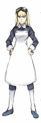 身材高挑的金发女子,脸上总是露出豪爽的笑容。虽然穿着宽大衣衫搭配牛仔裤,上头围着工作用围裙打扮,额前还挂着工业用护目镜,却是位能将整体印象统合成女仆的奇特人物。