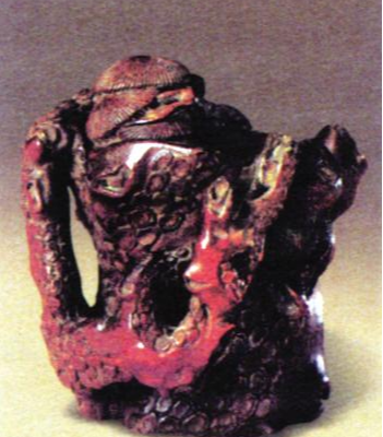张岱《陶庵梦忆》说:“南京濮仲谦,古貌古心,粥粥苦无能者,然其技艺之巧,夺天工焉……然其所以自喜者,又必用竹之盘根错节,以不事刀斧为奇,则是经其手略刮磨之,而遂得重价。”宋荔裳《竹罂草堂歌》中有为仲谦赋:“白门濮生亦其亚,大璞不斫[zhuó]开新硎。”所谓“大璞不斫”,是说能略施刀凿以见自然之趣。这与一般竹刻不同,须有很高的艺术修养才能为之,故能继承此法的人不多。 浅刻与 毛雕都属竹面 雕刻的阴文类刻法。毛雕最浅,刻痕细如毫发。一般不宜深刻的器物和细部都用此法。浅刻,其刀痕不仅有线,而且有面,能刻出书画的笔情墨趣。广义的浅刻也包括了阳文类中极浅的浮雕,仲谦的浅刻就是如此。但他的风格均能于简率中见朴拙之致。仲廉真迹,传世极罕,大抵雕工繁琐而题材庸俗者,多为妄人伪刻。 能继承仲谦刻竹技法者以乾隆时潘西凤成就最高,西凤,字桐冈,号老桐,浙江新昌人,侨寓扬州,因其刀法与仲谦相近,郑板桥誉为濮阳仲谦后一人。老桐系一饱读诗书的宿学之士,板桥有赠潘西凤绝句云:“年年为恨诗书累,处处逢人劝读书;试看 潘郎精刻竹,胸无万卷待何如!”然其仕途困顿,以鬻艺为生。其用畸形卷竹所制臂搁,虫蚀斑痕,宛然在目,似未经人手,而别饶天然之趣。铭文款识,著字无多,隽永有味,可见老桐刻竹亦有“大璞不斫”的天工之妙。