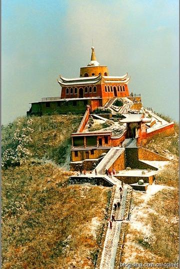韶峰,又称仙女峰,“韶峰耸翠”是韶山八景之一。峰顶原来造有一座石砌大庙,供奉南岳司天昭圣大帝神像。像高一丈二,全身披甲,怒目圆睁,手执双板斧,脚踏金睛兽,雕刻得栩栩如生,人们称圣帝爷爷。 传说圣帝曾到这里选址建殿,后来为何又移迁南岳呢?这里有一个故事。