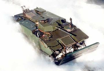 释义:在伊拉克战争里,美国海军陆战队依然在使用1971年开始服役的AAV7系列两栖装甲战车,随着美国新型EFV两栖远征战车的批量生产,AAV系列战车逐步被取代。美军使用两栖装甲战车的历史追溯到二战时期,它的主要功能是用来将海军部队从船坞登陆舰上安全运送到海岸,两栖装甲战车最重要的作用就是能够抵制机枪、炮弹的打击。海军陆战队使用的型号1979年开始服役的AAV7A1两栖突击战车。战车由三人驾驶,承载25名海军陆战队员,该战车还装备一挺M2 12.7mm重机枪和MK19 40毫米榴弹发射器,它的陆地最高时速为72公里,水中时速为13公里。