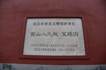 宝珠洞是北京八大处公园的第七处寺院,位于平坡山顶。宝珠洞建於清乾四十六年(1782年),寺院内有正殿及两厢配殿,殿後有岩洞,深广约五米,内砾石胶结,砾石颗粒状若巨珠,故名“宝珠洞”。 简介