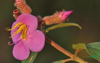 八蕊花是一种灌木,高1—1.2米;茎钝四棱形,上部分枝,幼时被极细的微柔毛,以后无毛。叶片坚纸质,圆形或略倒卵状圆形,顶端急尖,基部钝或广楔形,长9.5—13.5厘米,宽7.5—12厘米,边缘具不明显的细锯齿,齿尖具短刺毛,5(-7)条基出脉,两面被细微的秕[bǐ]糠,叶面脉下凹,背面脉隆起;叶柄长3.5—8厘米,具槽,无毛。伞形花序,腋生,总梗极短或几无,花梗长约1厘米,多少被微柔毛;花萼钟状漏斗形,长约6毫米,粗糙,多少被微柔毛,钝四棱形,裂片广卵形或三角状卵形,顶端急尖或近渐尖,长约2毫米,里面具小突起;花瓣粉红色,广卵形,1侧偏斜,顶端渐尖,长约9毫米,具小突起;雄蕊8,近等长,花丝长约8毫米,花药长约7毫米,紫色,基部具小瘤,药隔基部下延呈短距,距长约1毫米;子房坛形,顶端具4钝齿,齿具缘毛。蒴果近球形,直径约5毫米,与宿存萼同形;宿存萼粗糙。花期7-8月,果期5—6月。 生长环境