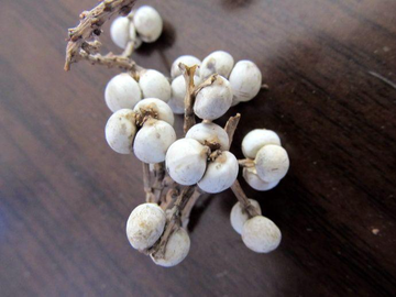 乌桕子呈椭圆形或半球形,长5~8mm,直径4~6mm,表面具白色或灰白色较厚的蜡层,种脊条形,稍隆起,基部有小种阜。除去蜡层,种皮黑褐色或棕褐色,坚硬,不易压碎。胚乳肥厚,类白色,富含脂肪油。气味均淡。[3]全年可采,拣除杂质,整理洁净,晒干或取其油。[1][4]