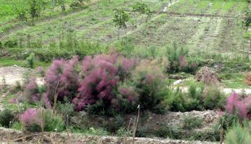 灌木,高2-3(-4)米;老枝直伸,灰褐色或灰色;当年生木质化小枝褐色或深褐色。绿色营养小枝上的叶退化,完全贴生在枝上,抱茎呈鞘状,但边缘不全抱合,先端 急尖,略向外伸,灰绿色。总状花序生当年生枝顶,集成顶生小型疏散圆锥花序,长2-5(-8)厘米,粗4-6毫米,花稀疏;苞片卵状披针形,渐尖,基部抱茎,下延,略具耳,长1.5毫米,与萼片几相等或比萼片长;花梗极短, 长不过1毫米;萼片卵圆形,急尖,淡绿色,边缘膜质半透明,较花梗长;花瓣倒卵形或长椭圆形,略偏斜,长1.7-2毫米,宽1.3-1.5毫米,高出花萼-倍,淡紫或紫红色,半张开至张开,花后花瓣宿存;花盘5裂;雄蕊5,稍长于花冠及子房,花丝着生于花盘裂片顶端,花药心形,顶端有明显的小突起;花柱3,长为子房的1/3-1/4;蒴果3裂,长5毫米;种子长0.5-0.6毫米,黑紫色。花期6-9月。 生长环境