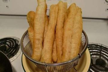 ,是自己家里做的油条。主要材料有面粉、温水、酵母、盐、糖、