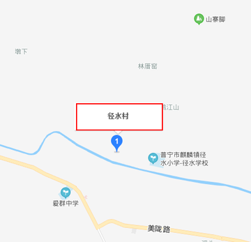 径水村,位于广东省揭阳市普宁市麒麟镇政府西北部,东至林 前村,南至奇美村,西至江头村,北至发坑村,全村总人口10530人,为半山区农业村。水村径水村有党员135人,预备党员3人。“两委”干部8人。由径水、江山、詹厝[cuò]、林厝四个自然村组成,现有耕地面积1750亩(其中旱地、低畦[qí]田300亩),山地13000亩,是半山区,属纯农业村,是麒麟镇三大行政村之一。 自然资源
