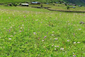 。海拔3200米。群山环绕,日东河绕村而过。