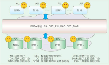 面向数据的体系结构(DOA,Data Oriented Architecture),建立在云计算的硬件架构之上,采用“面向数据和以数据为核心”的思想,通过数据注册中心(DRC,Data Register Center),数据权限中心(DAC, Data Authority Center),数据异常控 制中心(DEC, DataException Control Center)来统一定义数据、管理数据和提供 数据服务,通过数据应用单元(DAUs, Data Application Units)对各种应用进行管理和服务,建立一种数据大平台与碎片化应用的数据生态系统,构建起从数据保护到授权应用的整套机制,为有效解决大数据时代所面临软件体系结构的问题提供基础理论和方法技术支撑。 以上表述的数据是大数据时代下的广义数据,是真实世界映射成虚拟世界的各种类型的数据,应用则是由政府、企业和个人在互联网和移动互联网中随时随地、随心随意的各种需求产生出的碎片化和个性化的应用。数据生态系统可以简单形象地比喻为“肥沃的数据土壤上生长着茂盛的应用森林”。理解为:将不断积累和丰富的各种数据定义为数据土壤,那么建立在数据之上的各种碎片化、个性化和不断增长的应用则是应用森林。应用森林中的某一棵应用之树是具有生命周期的,可能会被淘汰或死亡,但整个森林是生态的、枝繁叶茂的和可持续发展的。