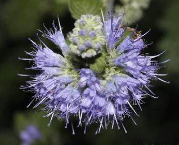 直立灌木,高0.5-2米;嫩枝密生灰白色绒毛。叶片披针形至卵状披针形,长2-5.5厘米,宽0.5-2厘米,顶端钝或渐尖,基部圆形或楔形,边缘常具深锯齿,锯齿深达叶面1/3-1/2处,表面绿色,疏被柔毛,背面密生灰白色茸毛,侧脉5-8对,在叶背凸出明显,在表面常微凹;叶柄长0.4-1厘米。 聚伞花序紧密呈头状,腋生和顶生,无苞片和小苞片;花萼长约2.5毫米,果萼长约6毫米,外面密生柔毛,顶端5裂,分裂达中部以下,裂片披针形 ,结果时花萼增大;花冠蓝紫色,二唇形,下唇中裂片较大,边缘呈流苏状,花冠管长5-7毫米,雄蕊4枚,与花柱同伸出花冠管外;子房无毛,柱头2裂。蒴果倒卵圆状球形,无毛,长约5毫米,宽约4毫米,果瓣具宽翅。花期7-9月,果期9-10月。 近种区别