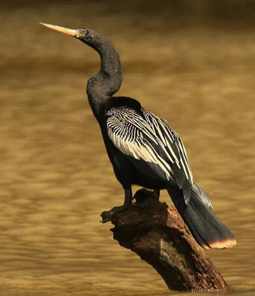 美洲蛇鹈(学名:Anhinga anhinga)蛇鹈科的鸟类,具有全蹼,四趾均朝前,有蹼相连,嘴下常常有发育程度不同的喉囊。是热带内陆水鸟,颈细长如蛇,善于潜,生活在热带和温带地区淡水河流、沼泽和湖泊等周边林木茂盛的地方。看起来像鸬鹚也被称作蛇鸟或冲鹈(darters)。有90厘米长,脖子和头都像蛇,喙长,尾巴也长。主要以鱼类为食,它们用嘴把鱼叉住,接着甩到空中,之后再吞吃。 种群现状