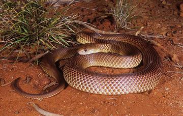 棕伊澳蛇(学名:Pseudechis australis),又名棕王蛇、穆尔加蛇或皮尔巴拉眼镜蛇,是澳洲眼镜蛇科伊澳蛇属的一种毒蛇,[2][6]澳大利亚已知的140种陆地蛇类之一,它是澳洲最重的毒蛇,澳大利亚最大的毒蛇,也是全世界毒液输出量最大的蛇。[1][7][5]其毒液由肌毒素组成,致命剂量为每千克皮下2.38毫克,[2]需要使用伊澳蛇属抗蛇毒血清。[1]此外,其毒液已被证实不仅具有酶活性,还具有溶血性、神经毒性和抗凝活性。[8] 棕伊澳蛇平均体长2.5米[5],头部宽大,鼻子光滑,颜色在其分布范围内因地区而异,在沙漠中为浅棕色,而在昆士兰州、南澳大利亚州和新南威尔士州较冷的地区则为深棕黑色。[2]尾部通常比身体更暗,头顶颜色均匀,与体鳞的深色相似。眼睛相对较小,虹膜呈淡红棕色。腹部为奶油色至鲑鱼色,通常分散有橙色斑点。[1] 命名与分类