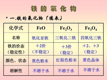 )。氧化亚铁是一种黑色粉末,不稳定,易被氧化;氧化铁是一种红棕色粉末,可作红色颜料、
