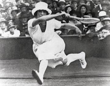法国著名网球选手苏珊·朗格伦的特立风格。1920年,第7届比利时安特卫普夏季奥运会,年仅21岁的朗格伦已是一派王者风范:5场女单比赛保持全胜,轻而易举摘获女单金牌;同时,她与马克思·德库吉斯(Maxime Decugis)搭档夺下混双金牌,又和伊丽莎白·达耶(Elisabeth d’Ayen)联手赢得女双铜牌。在总共10场比赛中,朗格伦以仅失4局的惊人纪录成为该届奥运会的风云人物。这位来自巴黎的窈窕女子,以流畅的脚步、精准的截击和慑人的扣杀横扫女子网坛。在其1919-1926年的短暂的运动生涯中,她只输掉一场比赛。同时,所向披靡的朗格伦还以其迷幻优雅的性感磁力成为首位国际网球明星,她在比赛中公然哭泣、抿嘴,在盘与盘之间啜饮白兰地,她撩起了裙摆、男人的欲望、保守主义者的愤怒,率先成为网球票房的保障。苏珊·朗格伦1899年5月24日生于法国贡比涅,幼时一直体弱多病,因此她的父亲查尔斯决定让她学习网球改善体质。查尔斯并非网球运动员,但他长期担任尼斯网球俱乐部的秘书,对于这项运动熟悉且痴迷,便自己担当起小苏珊的教练。在父亲严格的训练下,朗格伦的运动天赋得以开启,少年时代就展露了过人的击球精准性。 艰难历程