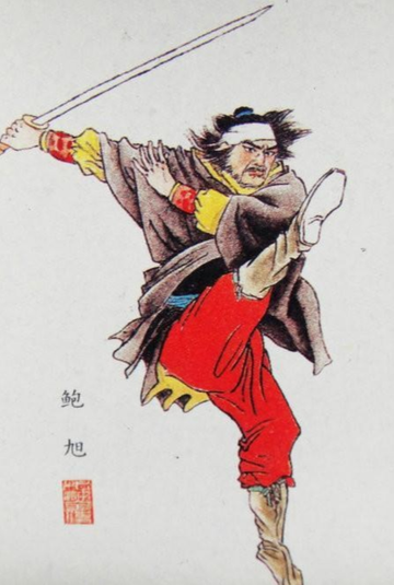 鲍旭是寇州人氏,善使一柄阔剑,因长相凶恶,平生只好杀人,人称丧门神。他聚集五七百小喽啰,占据枯树山,打家劫舍,麾下有二三百匹战马。