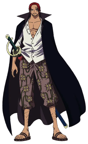 香克斯(日语名:シャンクス),是日本漫画《航海王》及其衍生作品中的角色,又译作“杰克斯”,全名费加兰德·杰克斯,外号“红发”,首次登场于《航海王》漫画第1话、动画第4集。香克斯出身于天龙人费加兰德家族,是红发海贼团的 船长,新世界的“四皇”之一,悬赏金40亿4890万贝里,身为海贼的同时却和世界政府最高领导人五老星都有联系,是个充满未知数的男人。[1][2][5]香克斯拥有一头醒目的红色头发,左眼处留有三道疤痕,常穿一件白色衬衫,下装穿着印有花纹的褐色七分裤,脚下穿着人字拖,腰间挎着一把名剑“格里芬”,年轻时期的香克斯一直戴着罗杰的草帽。[6][1][2]香克斯是路飞最尊敬的人之一,拥有霸王色霸气、武装色霸气、见闻色霸气,他为人随和,性格开朗,有犹如大海的心胸,能忍受别人对他的一切侮辱,就是不能忍受他人欺负他的朋友。[1][2] 神之谷大战后,香克斯被海贼王罗杰发现并收养,从此脱离天龙人特权体系。9岁时正式成为罗杰海贼团见习海贼,与巴基结为伙伴。15岁目睹罗杰处刑,接过罗杰遗留的草帽,与巴基分道扬镳后独自航海,开启创立红发海贼团的旅程。17岁正式成立红发海贼团;20-27岁间与鹰眼多次展开剑术对决,胜负未分,成为大海传奇。27岁暂居东海风车村,为救路飞被近海之王咬断左臂,后将草帽托付给路飞。离开东海后,率红发海贼团征战新世界。33岁时,红发海贼团实力达到巅峰,正式跻身 “四皇”,成为新世界的统治级势力之一。33-39岁间,以 “平衡世界”为隐性使命 —— 曾阻止凯多偷袭白胡子海贼团,避免战争升级。39岁时,顶上战争爆发,在白胡子、艾斯战死后率团驰援,一剑挡下赤犬攻击,在场的各方都“看在他的面子份上”藉这个契机停止了战斗,终结混战,主持二人葬礼,衔接旧时代与新时代,“大事件”至此结束。世界会议期间,以特殊身份(天龙人后裔)与五老星密谈,讨论 “洛克斯复活”等隐秘威胁;揭露父亲曾是洛克斯海贼团成员的过往,深化与世界政府的博弈关系。39岁,在艾尔巴夫与基德海贼团交锋,以“神避”秒杀基德,夺取路标历史本文拓本,正式宣告从 “世界平衡者”转向 “One Piece 最终竞争者”。[1][2][5] 在日本动漫《航海王》中,少年香克斯由岛崎信长配音,成年香克斯由池田秀一配音,在真人版电视剧《海贼王》中,香克斯由皮特·加蒂奥特饰演。[2][3][4]在JUMP编辑部第一回中,香克斯以5883票的人气票数获得第三名,在第二回中香克斯以1880票的人气票数获得第七名。[7][8] 角色经历