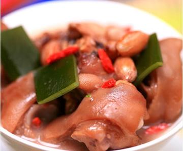 海带花生煲猪蹄,美食,主要原料有海带、花生米、猪蹄子一个,此菜做法简单,是一道美味的