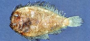 鳞中型易脱落,眼侧被栉鳞,盲侧被圆鳞;侧线鳞数80-86。背鳍正常,软条数104-113;臀鳍正常,软条83-90;胸鳍短于头长;左右腹鳍不对称,起始点远在下眼后方;尾鳍圆型。体呈棕色或灰色,背鳍和臀鳍中央具一串暗色斑,尾鳍中央数鳍呈黑色;盲侧灰白色。体长可达20.3公分。 繁殖