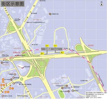五里店立交与对山立交之间,靠近五里店立交东端,毗邻朝天门大桥,是