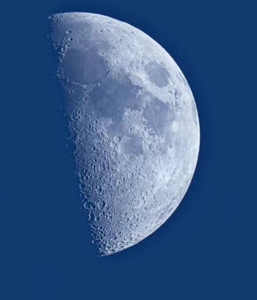 上弦月就是从地球上看,月球在太阳东90°时所呈现的月相。此时,地面观测者可看到月球明亮的西半圆面。上弦月通常出现在农历每月初七、初八,从地球上看,月球、地球、太阳三者连线组成直角三角形,这时,月球反射太阳光的那一面恰好有一半可以被看见,从地球上看就是一个半圆形的月球。随着月球运动,照亮的范围越来越大,月相也就从上弦月变成了盈凸月。[4]