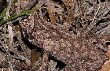 挂墩角蟾外形与小角蟾Megophrys minor相近。头长宽几相等;吻盾状,突出于下颌,吻棱角形;颊部稍凹;鼓膜明显;具上颌齿,无犁骨齿;舌后圆形。胫跗关节前伸达鼓膜,左右跟部不相遇;趾缘无膜,趾间具蹼迹。皮肤较光滑,头和上眼睑有许多疣粒。颞[niè]褶极明显,肩后有疣粒排列成行。生活时背棕黑,眼间具“V”形斑,背具“×”纹;腹有黑纹和白点;下颌中部有两条白边黑纵纹。 分布范围